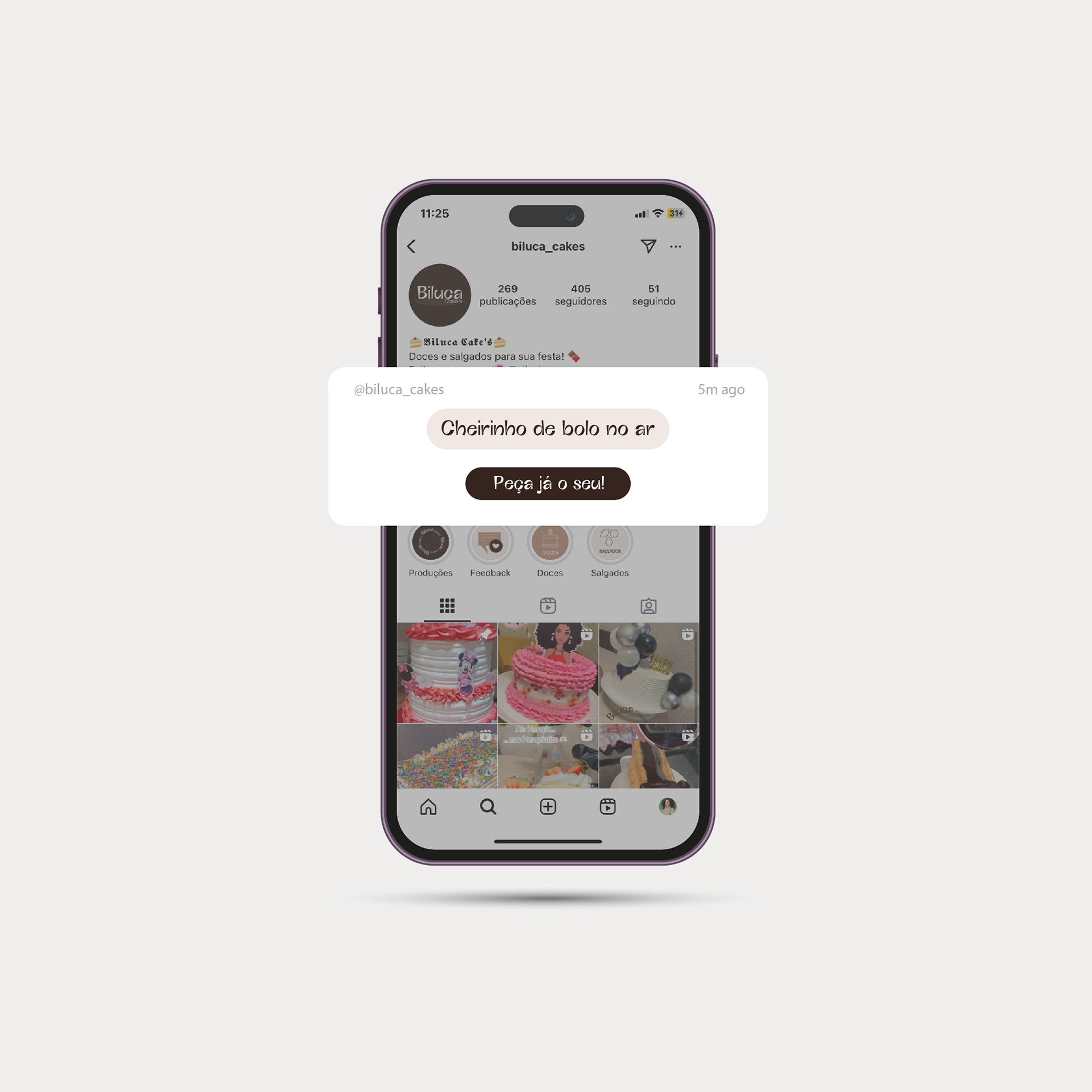 A Biluca está no mercado há mais de 10 anos, atua de forma caseira fazendo bolos e salgados deliciosos para festas. Decidiu ressignificar a sua marca trazendo o novo momento, o digital.